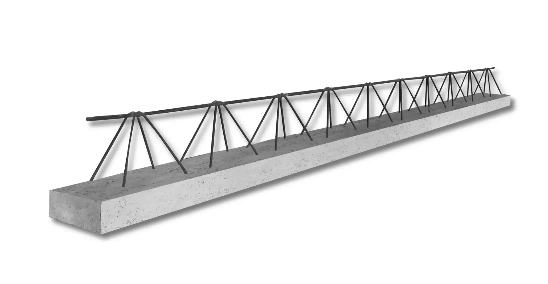 Vigueta de Alma Abierta - Elemento estructural conformado por una armadura triangular electrosoldada, reforzada con varilla de diferentes diámetros, con una base de concreto para recibir la bovedilla.